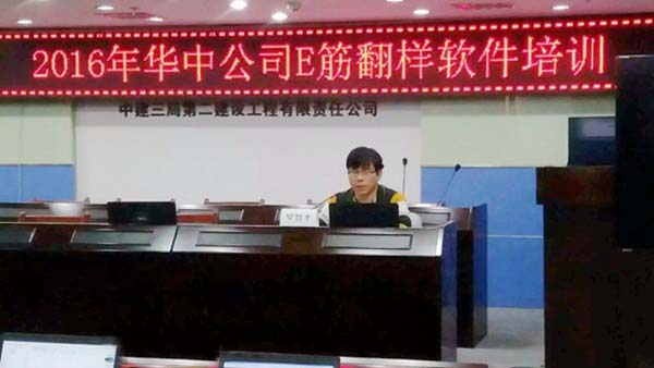 為了提高在建項目鋼筋翻樣效率,中建三局華中分公司舉辦了E筋翻樣的培訓班,邀請E筋軟件創始人羅智平、E筋湖北代理趙洪國作為培訓的講師。培訓為期一天半,主講羅智平向學員們介紹了鋼筋翻樣的趨勢和E筋翻樣軟件的使用。在培訓過程中,讓大家現場實際操作軟件,更直觀地感受E筋翻樣軟件的簡便和實用性。